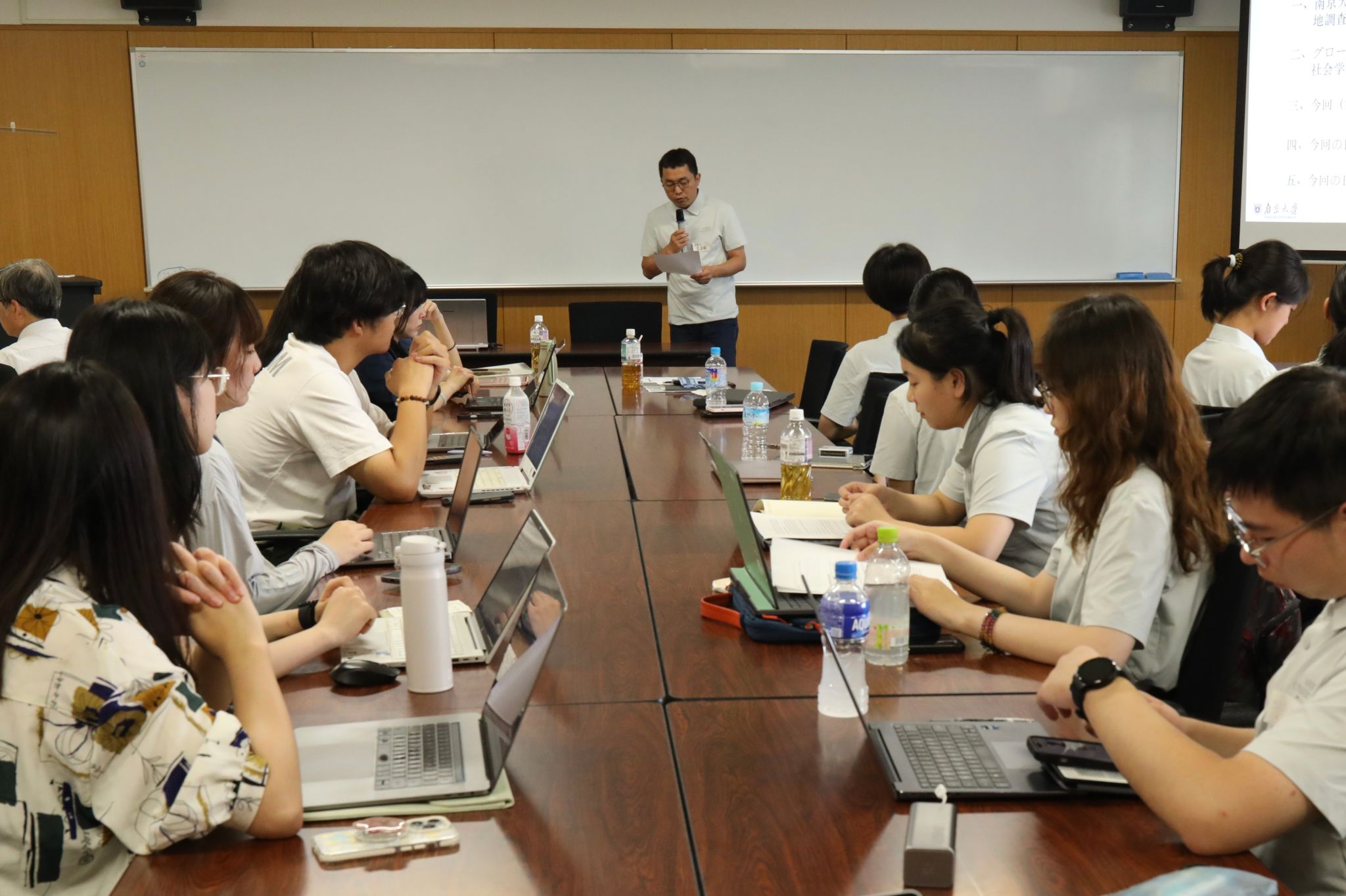 During the post-fieldwork synthesis sessions from July 14 to 16, students analyzed the field data on community governance initiatives by various stakeholders, examining them against Japan's pressing societal challenges – an aging population, declining regional vitality, difficulties in immigrant integration, and environmental concerns. This prepared the students for their July 16 presentation at Nagoya University, where they presented research findings to Japanese professors and students. After that, team members expressed their respect and gratitude to Prof. Nobuhiko Nibe in Japanese under the guidance of Sato Kaho, followed by a collective rendition of Nanjing University's anthem. Then the team attended a farewell reception hosted by Nagoya University, where mutual understanding and friendship were strengthened, bringing the transnational academic collaboration to a fitting conclusion.